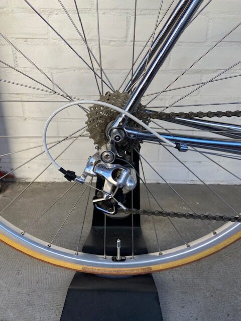 とても貴重な車体です。フレームを構成するラグはメッキ処理されており、雰囲気が尋常ではありません。また特殊なボトルとボトルゲージも搭載してます。