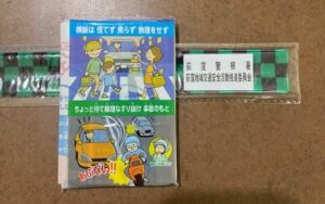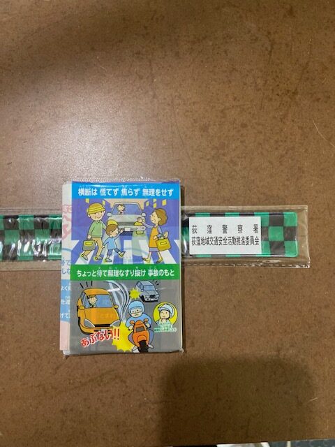 今朝店に向かう途中の青梅街道と環状八号線、四面道の交差点で信号待ちをしていると、気をつけて乗ってくださいね!と伝えられ裾バンドとポケットティッシュを頂きました。