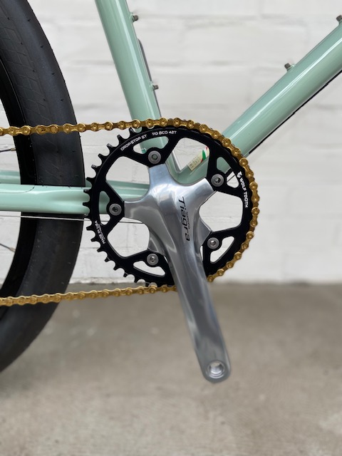 仕様は街中を颯爽と駆け抜ける事に重点を置いた仕様になります。フロントシングル、ギア比はクロスレシオ。